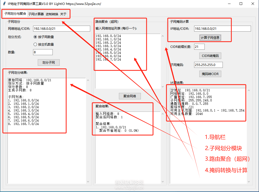 支持IPv4,IPv6之间的进制转换,包含主要进制(二进制,十进制,十六进制)